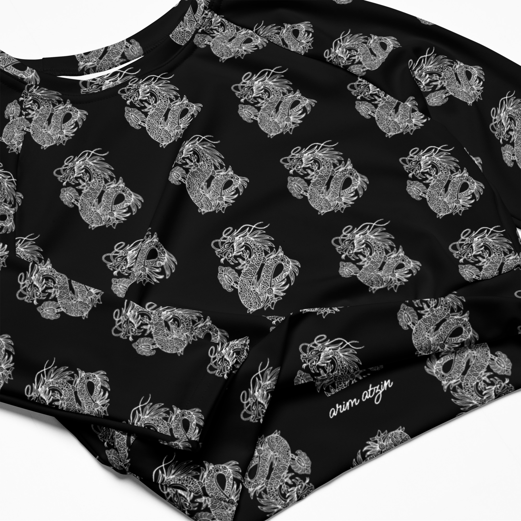 Este crop top «El Camino del Dragón» está confeccionado con poliéster reciclado y licra, lo que lo convierte en una opción eco friendly ideal para practicar deporte o combinar con tus looks urbanos. El crop top tiene una etiqueta extraíble y una cinturilla ancha de doble capa que le proporciona un ajuste cómodo.